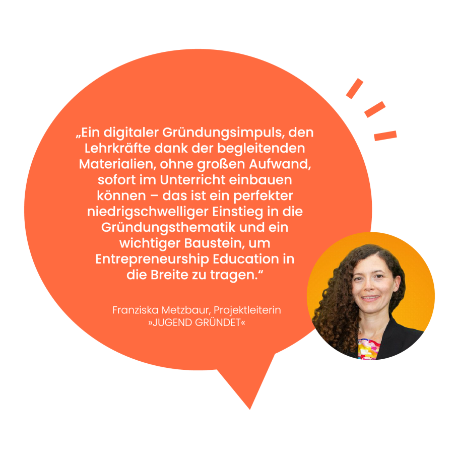 Wir haben den Gründungsimpuls in Zusammenarbeit mit Lehrkräften und der bundesweiten Bildungsplattform JUGEND GRÜNDET entwickelt, die seit 2003 vom Bundesministerium für Bildung gefördert und von der Kultusministerkonferenz der Länder empfohlen wird.